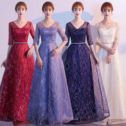 Yeni varış zarif Sequins abiye kadın derin v yaka saten balo parti elbise kat uzunluk mor resmi önlük