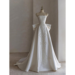 Appliques Einfache Satin Braut Träger lose Satin Brautkleider Große Schleife Brautkleider