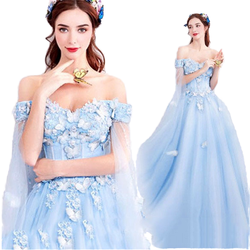 新品ライトブルーロングオフショルダー蝶ショール女性女性用プロムイブニングパーティードレス花ウェディングドレス
