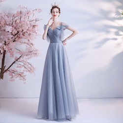 2022 Новое синее бальное платье с коротким рукавом для девочек