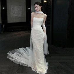 2025 bạc mới Thanh Lịch Đẹp hiện đại của phụ nữ đính hôn cao cấp đuôi Cá Buổi tối bên váy